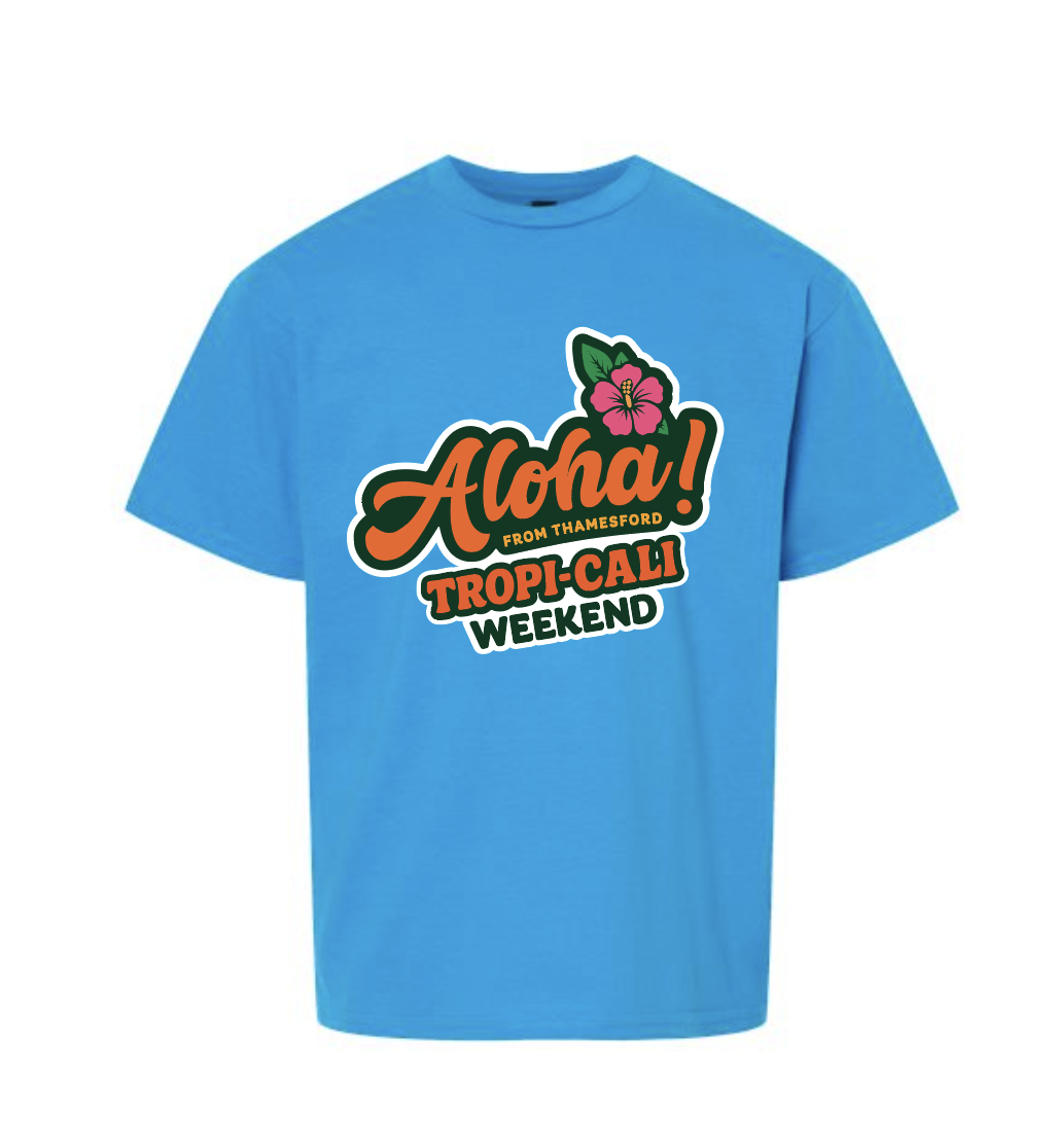 Our exclusive Calithumpian 2026 kids tee brings the perfect blend of beachy fun and local pride with its bold “Aloha from Thamesford” design. Set on a vibrant blue backdrop, this shirt is all about carefree summer energy, whether you’re catching parade candy, dancing in the streets, or just soaking up the festival spirit.